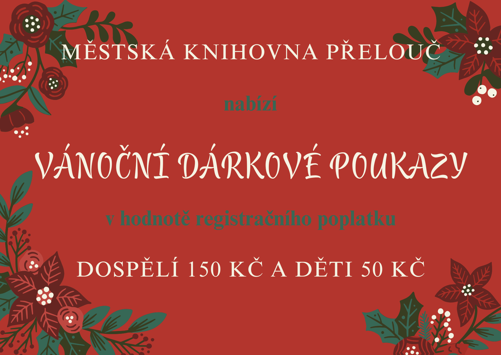 JIž tradičně svým blízkým můžete pod stromeček nadělit dárkový poukaz do knihovny.
